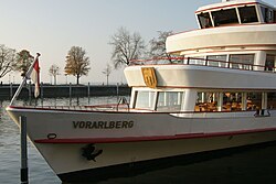 | Die "Vorarlberg" im Bregenzer Hafen. *** Veröffentlicht: Gunnar Strunz in "VORARLBERG Mit Bregenzerwald, Großem Walsertal, Arlberg und Montafon ISBN 978-3-89794-280-6 2. Auflage 2014. | Eigenes Werk | böhringer friedrich | Datei:Vorarlberg Schiff1.JPG |