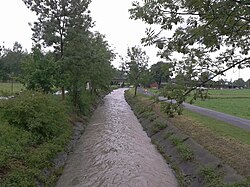 | Fußenauer Kanal im Ried in Dornbirn , Vorarlberg , Österreich Blick zur Rheintalautobahn A14 bei Gewässerkilometer 1,10 nach einem Schlagwetter am 26. Mai 2015 (60 l/m²/h). | Eigenes Werk | Asurnipal | Datei:Fussenauerk n Schlagw-02.jpg | |