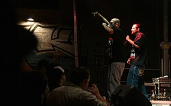 | See file name. This was a demonstration of some 10.000-15.000 persons who are against actual Austrian 'policy' on asylum rights. It was supported by a quantity of artists, writers and politicians. Please note that camera's time stamp is set to UT, which is local CEST -2h. | Eigenes Werk | W. | Datei:Genug ist Genug - Vienna 20090701 038 rapper 'fuchs MC'.jpg | |