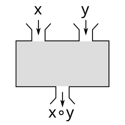 | Verdeutlicht die Idee binärer Operatoren mittels Black Box-Modell. | Eigenes Werk | Talonnn | Datei:Binary operations as black box.svg | |