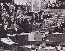 | Flag of Hungary from 6 November 1915 to 29 November 1918 and from August 1919 until mid/late 1946. | Diese Datei enthält Elemente, die von folgender Datei entnommen oder adaptiert wurden: | User:Zscout370 , colour correction: User:R-41 , current version: Thommy | Datei:Flag of Hungary (1915-1918, 1919-1946).svg | |