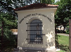 | Dieses Foto zeigt das im digitalen Kulturgüterverzeichnis der Gemeinde Wien (Österreich) unter der Nummer 45171 ( commons , de ) aufgeführte Objekt. | Eigenes Werk | Paechterstadl | Datei:Göppelkreuz-Kapelle DSC7662b.jpg |