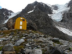 | Günther-Messner-Biwak unterhalb der Hochfernerspitze mit Griesferner (links) und Hochferner | Eigenes Werk | Whgler | Datei:Günther-Messner-Biwak.jpg | |