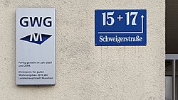 | Firmenschilder und Häuser der gemeinnützigen Münchner Wohnbaugesellschaft GWG in der Münchner Au | Eigenes Werk | Burkhard Mücke | Datei:GWG in der Münchner Au 05.jpg | |