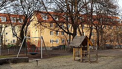 | Sanierte Genossenschafts-Wohnanlage der GWG. München, Sendling-Westpark | Eigenes Werk | Henning Schlottmann ( User:H-stt ) | Datei:GWG genossenschaftsblock 1084.JPG | |