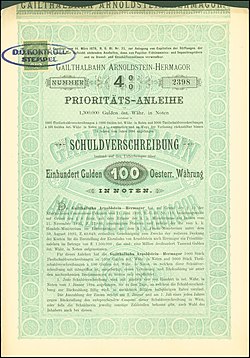Errichtet wurde die Gailtalbahn auf Initiative des Arnoldsteiner Fabrikanten Felix von Mottony. Die Erteilung der Konzession erfolgte am 11. Juni 1893. Im Jahr 1894 wurden für den Bau 2.500 Stück Stammaktien zu 100 Gulden 1.500 Stück Prioritätsaktien zu 100 Gulden aufgelegt. Das Land Kärnten übernahm 1.000 Stück dieser Aktien. Darüber hinaus wurden 3.500 Stück Prioritätsanleihen zu 100 Gulden und 1.000 Stück zu 1.000 Gulden mit 4-prozentiger Verzinsung aufgelegt. Das Gesamtkapital betrug demnach 800.000 Gulden. Nach der Währungsreform von 1925 wurde 1926 das Nominale auf fünf Schilling umgewertet.