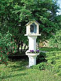 | Materl bei Bauer in Gaisruck (Gemeinde Hausleiten) , eine Ortschaft in der niederösterreichischen Marktgemeinde Hausleiten . Rechts an der LH14 bei der östlichen Ortsausfahrt in Richtung Hausleiten. 16° 3' 53,4 Ost, 48° 23' 52,8 Nord, 184. Errichtet 1971 im Zuge der Verbreiterung der Dorfeinfahrt; wurde als Ersatz für ein Marterl, das weiter oben am Eingang zur Ziesel stand, an dieser Stelle wieder hergestellt.H.ü.Nn | Eigenes Foto Karen und Herbert Fritz | DrBigT | Datei:Gaisruck Materl bei Bauer.jpg | |