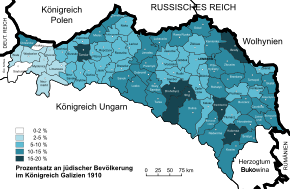 - 1 2 Lutz C. Kleveman: Jerusalem des Ostens. 21. März 2017, abgerufen am 9. Juni 2019: „Von Hamburger Reedereien überredet, emigrierten zwischen 1880 und 1910 insgesamt 236.504 jüdische Galizier in die Vereinigten Staaten. Diese hohe Zahl verdeutlicht das Scheitern vieler Assimilationsversuche.“