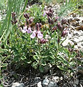 und die Unterlippe ist zweizähnig.[1] Die Farbe der Blütenkronen ist sehr vielfältig.[3] Die Krone hat eine kurze Kronröhre ohne Haarring an der Innenseite. Die Kronröhre kann kürzer oder länger sein als der Kelch.[1] Lediglich die Unterlippe ist deutlich ausgebildet. Die Oberlippe ist unscheinbar, kurz und gespalten. Die Zipfel sind zur Unterlippe gerückt, so dass der Eindruck entsteht, die Unterlippe sei fünflappig und die Oberlippe fehle völlig.