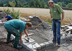 | Prüfer beobachtet die Arbeit eines Auszubildenden im Garten- und Landschaftsbau | Eigenes Werk | Sigismund von Dobschütz | Datei:Gärtnerprüfung 03.JPG | |