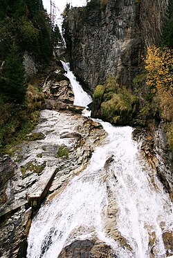 Der Wasserfall liegt mitten im Ort Bad Gastein und war schon Motiv vieler berühmter Maler und Dichter. Die Fallhöhe der Gasteiner Ache in drei Stufen beträgt ca. 340 m.[1] Die durch Zerstäubung negativ ionisierte Luft ist ein wichtiges Kurmittel des Ortes.
