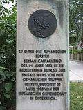 | Inschrift auf der linken Seite des Sockels der Büste des walachischen Fürsten Serban Cantacuzino in Wien-Meidling, 1983 | Eigenes Werk | Buchhändler | Datei:Büste von Servan Cantacuzenos2.JPG | |