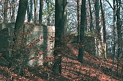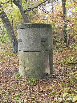 | Remains of a secondary sentry (or gasoline storage) bunker in the system of the Gaugefechtsstand Wien (Ottakring, Vienna) | Eigenes Werk | Hermann A.M. Mucke | Datei:GauGefStWien SentryBunker.jpg |