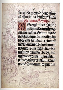 | Das Gebetbuch Kaiser Maximilians I., hier Randzeichnung (Feder) | Fol.23v: Gebet zum Heiligen Georg | Albrecht Dürer | Datei:Gebetbuch.01.jpg | |