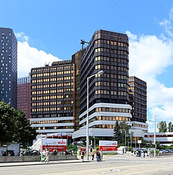 Zentrale der Wiener Gebietskrankenkasse an der Adresse Wienerbergstraße 15-19 im 10. Wiener Gemeindebezirk Favoriten . Das Verwaltungsgebäude mit einem Y-förmigen Grundriss wurde von 1977 bis 1981 nach Plänen des Architektenduos Thomas Reinthaller und Franz Requat errichtet und am 15. Oktober 1981 eröffnet. | Eigenes Werk | C.Stadler/Bwag | Datei:Favoriten (Wien) - Zentrale der Wiener Gebietskrankenkasse.JPG | |