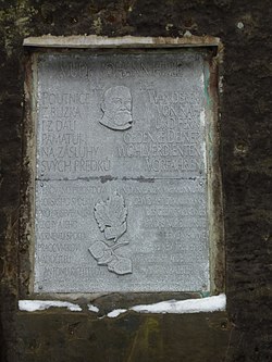 | inscription: Wanderer von nah und fern gedenke deiner wohlverdienten Vorfahren. In dankbarer Anerkennung gewidmet dem Obmann des Gebirgsvereines für das nördlichste Böhmen sowie seinem treusten Mitarbeiter Oberlehrer Anton Richter | Eigenes Werk | Buedner | Datei:Kyjov-Hille.jpg | |