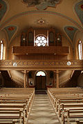 | Kirche in Fontanella im Großen Walsertal in Vorarlberg , Österreich . Orgel auf der Empore. | Eigenes Werk | Asurnipal | Datei:Fontanella-Kirche-Innen-Orgel-01.jpg | |