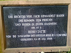 - ↑ Eine inoffizielle Namensliste der Verwundeten und Gefangenen findet sich in der Wormser Zeitung Nr. 116 vom 22. Juli 1866 Digitalisat der Universitäts- und Landesbibliothek Darmstadt.
