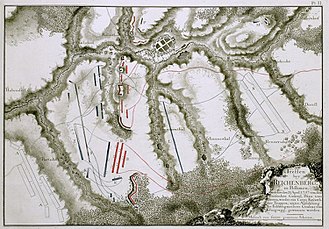 | Plan des Gefechts bei Reichenberg zwischen den Preußen unter Prinz von Bevern und den Kaiserlichen unter Graf Königsegg, 21. April 1757,Kupferstich, koloriert | digitales archiv marburg 1 | Datei:Schlacht von reichenberg.jpeg |