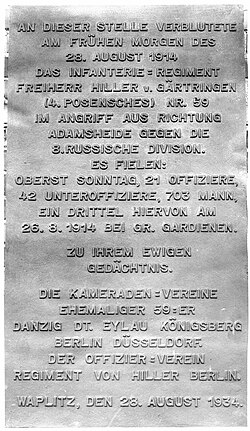 - ↑ Max Hoffmann: Tannenberg wie es wirklich war. Verlag für Kulturpolitik, Berlin 1926, S. 283.