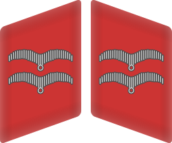 | Rank insignia of Swiss Army, here shoulder mark “Gefreiter” (Gfr), OR2, enlisted men rank group. | Eigenes Werk | Ultimate Destiny | Datei:CHE OR2 Gfr.svg | |