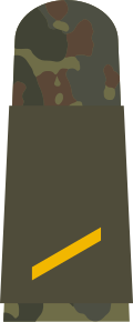 - ↑ Aus Platzgründen verkürzte Bilduntertitel. Gemeint sind jeweils Heeresuniformträger, Luftwaffenuniformträger und Marineuniformträger. Die neben der Aufschiebeschlaufe für Heeresuniformträger abgebildete jägergrüne Flachlitze deutet auf einen Soldaten der Panzergrenadiertruppe, der Infanterie oder der Spezialkräfte hin. Neben den hier auf den Schulterklappen aufgeschoben abgebildeten Aufschiebeschlaufen für die Feldbluse im fünffarbigen Flecktarnmuster gibt es noch etliche weitere Dienstgradabzeichentypen, die im Artikel →„Dienstgradabzeichen der Bundeswehr“ ausführlicher dargestellt werden.