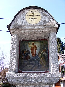 | Gemeinde Bergheim (Bezirk Salzburg-Umgebung: Geheimnissäulen auf dem Weg nach Maria Plain - Bildstock XV | Eigenes Werk | Ewald Ehtreiber | Datei:Bergheim - Plainbergweg - Geheimnissäule XV - 2020-08-24-4 (cropped).jpg | |