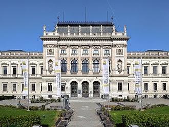 | Mittelrisalit der Frontseite des Hauptgebäude der Universität Graz. Das Gebäude wurde unter der Bauleitung des Architekten Wilhelm von Rezori (1852–1913) mit strenghistoristischer Neorenaissancefassade errichtet. Die Einweihung erfolgte am 4. Juni 1895 in Anwesenheit des österr. Kaisers: 1 , 2 . | Eigenes Werk | C.Stadler/Bwag | Datei:Graz - Universität, Hauptgebäude (a).JPG | |