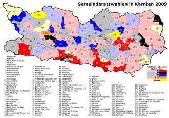 | Gemeinderatswahlen in Kärnten 2009 – Mehrheiten | Eigenes Werk | Davele2014 ( Diskussion ) 19:35, 13 February 2015 (UTC) | Datei:Gemeinderatswahlen in Kärnten 2009 - Mehrheiten.png | |