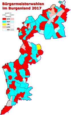 - ↑ Land Burgenland: Anzahl der Bürgermeister pro Partei, abgerufen am 29. Oktober 2017.