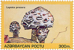 | Briefmarke aus Aserbaischan mit Parasolpilzen | http://www.azermarka.az/en/1995.php | Post of Azerbaijan | Datei:Azerbaijan stamp Lepiota procera.jpg | |