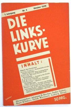 - ↑ Helga Gallas: Die Linkskurve (1929-32 ). Ausarbeitung einer proletarisch-revolutionären Literaturtheorie in Deutschland. Dissertation FU Berlin 1969. Ladewig, Berlin 1969, S. 122–125.