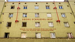 | Gemeindebau Georg-Schmiedel-Hof in Wien Brigittenau | Eigenes Werk | Peter Gugerell | Datei:Georg Schmiedel-Hof 07 Eingang Kluckygasse.jpg | |