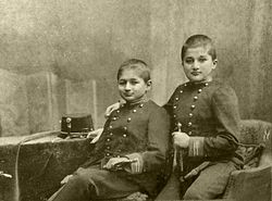 | Alexander und Constantin Wassilko von Serecki 1903 im Theresianum, Söhne des Grafen Georg Wassilko von Serecki und der Elisa von Ohanowicz | Diese Datei wurde von diesem Werk abgeleitet: Alexander und Constantin Wassilko von Serecki 1903.JPG : | Alexander_und_Constantin_Wassilko_von_Serecki_1903.JPG : unbekannter Fotograf derivative work: Hic et nunc | Datei:Alexander und Constantin Wassilko von Serecki 1903-2.JPG | |