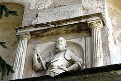 | Reliefbüste von Georg von Khevenhüller, Gründer und Erbauer von Burg Hochosterwitz, über dem Khevenhüller Tor der Burg Hochosterwitz, Gemeinde Sankt Georgen am Längsee , Bezirk Sankt Veit an der Glan, Kärnten , Österreich , EU | Eigenes Werk | Johann Jaritz | Datei:Georg Khevenhueller Reliefbueste am Khevenhuellertor Burg Hochosterwitz 22042007 99.jpg | |