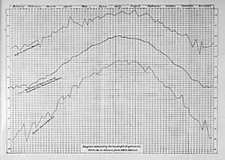 | Temperaturklimadiagramm von St. Louis von 1836 bis 1882. | The mean and extreme daily Temperatures in St. Louis during forty seven years, as calculated from daily observations . In: Transactions of the Academy of Science of St. Louis . Band 4, 1883, S. 496-508. | Gustav Hambach (1835-1922) | Datei:Temperaturklimadiagramm St Louis 1836 1882.jpg | |