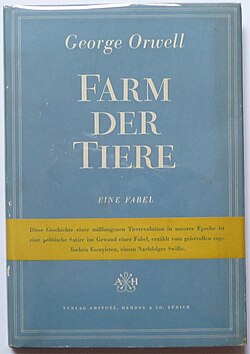 | Deutsche Erstausgabe 1946, Amstutz, Herdeg & Co. Zürich (im Impressum ohne Jahresangabe) | Eigenes Werk | Farmertiere | Datei:Orwell.jpg | |