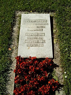 | Hevesy György sírja Budapesten. Kerepesi temető: 27. MTA. | http://www.agt.bme.hu/staff_h/varga/foto/kerepesi/hevesy-gy.html | Dr Varga József | Datei:Hevesy György sírja.jpg | |