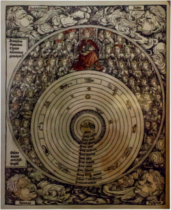 Geocentric universe and the hierarchies of cherubim and seraphim, etc., leading to God. From Hartmann Schedel, Liber chronicarum mundi, (Nuremberg Chronicle) Nuremberg, 1493. Woodcut. | Liber chronicarum mundi | Hartmann Schedel (photo: Heinz-Josef Lücking) | Datei:Geocentric universe - Hartmann Schedel - Liber chronicarum mundi - 1493.png | |