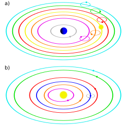 Im geozentrischen Weltbild wird angenommen, dass alle Bewegungen des Mondes, der Sonne und der Planeten geometrisch auf Kurvenbewegungen ablaufen um die als ruhend oder um ihre Achse rotierend gedachte Erde. Beim homozentrischen System des Eudoxos von Knidos (ca. 390–338 v. Chr.) findet diese Kurvenbewegung auf Kreisbahnen statt, deren Achsen durch das Erdzentrum gehen und somit perfekt erscheinen.[2]