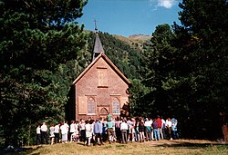 | Gottesdienst in der Kapelle "Maria im Schnee" am Gepatschhaus | Selbst fotografiert am 20. August 2000 | Hejkal | Datei:Maria im Schnee.jpg | |