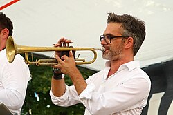 | de:Gerd Rahstorfer , Trompeter und Komponist, bei seinem Auftritt bei "Jazz im Park" mit der Gruppe de:Jazzodrom am 2016-09-10 in de:Vöcklabruck | Eigenes Werk | Robert Wetzlmayr | Datei:Gerd Rahstorfer.jpg |