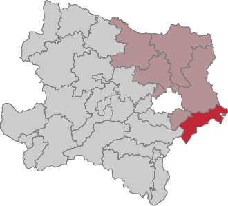| Karte Niederösterreichs mit hervorgehobenem Gerichtsbezirk Bruck an der Leitha (dunkelrot) und dem Gebiet des Landesgerichts Korneuburg (hellrot) | Eigenes Werk | ZL | Datei:Gerichtsbezirk Bruck an der Leitha.svg | |