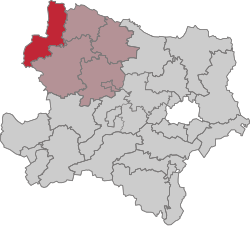 | Karte Niederösterreichs mit hervorgehobenem Gerichtsbezirk Gmünd in Niederösterreich (dunkelrot) und dem Gebiet des Landesgerichts Krems an der Donau (hellrot) | Eigenes Werk | ZL | Datei:Gerichtsbezirk Gmünd in Niederösterreich.svg | |