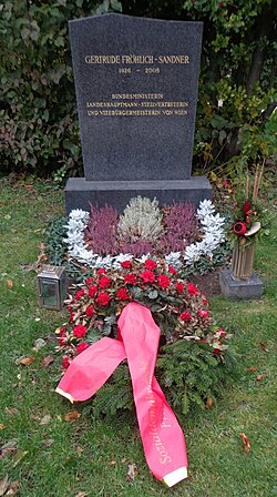| Wiener Zentralfriedhof - Gruppe 32 C, Ehrengrab von Getrude Fröhlich-Sandner | Eigenes Werk | PicturePrince | Datei:Wiener Zentralfriedhof - Gruppe 14 C - Gertrude Fröhlich-Sandner.jpg |