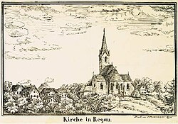 | Ansicht der Pfarrkirche Regau ; Lithographie aus dem 4. Viertel des 19. Jh. | www.ortsansichten.at -> Ort -> Österreich -> Oberösterreich -> Vöcklabruck -> Regau -> Regau-Ansicht der Kirche in Regau (OA I 230/3) Anm: direkt aufs Bild verlinken scheint nicht zu gehen | Alexander Hochwimmer | Datei:Pfarrkirche Regau Hochwimmer.jpeg | |