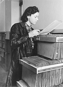 | Es folgt die historische Originalbeschreibung , die das Bundesarchiv aus dokumentarischen Gründen übernommen hat. Diese kann allerdings fehlerhaft, tendenziös, überholt oder politisch extrem sein. Innsbruck Umsiedlung der Südtiroler: Kartei der Rückwanderer in der Zentralstelle der Umsiedlung Südtirol | Dieses Bild wurde im Rahmen einer Kooperation zwischen dem deutschen Bundesarchiv und Wikimedia Deutschland aus dem deutschen Bundesarchiv für Wikimedia Commons zur Verfügung gestellt. Das deutsche Bundesarchiv gewährleistet eine authentische Bildüberlieferung nur durch die Originale (Negative und/oder Positive), bzw. die Digitalisate der Originale im Rahmen des Digitalen Bildarchivs . | Schwabik, Marian A. J. | Datei:Bundesarchiv Bild 137-055693, Innsbruck, Zentralstelle Umsiedlung Südtirol.jpg | |
