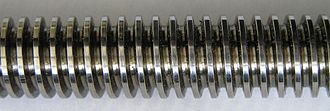 | Close-up view of a male Acme thread. 5/8-8 right-hand single-start ACME-2C (self-centering). Photo by Yannick Trottier, 2007 | Die Autorenschaft wurde nicht in einer maschinell lesbaren Form angegeben. Es wird angenommen, dass es sich um ein eigenes Werk handelt (basierend auf den Rechteinhaber-Angaben). | Die Autorenschaft wurde nicht in einer maschinell lesbaren Form angegeben. Es wird Ytrottier als Autor angenommen (basierend auf den Rechteinhaber-Angaben). | Datei:Acme thread.jpg | |