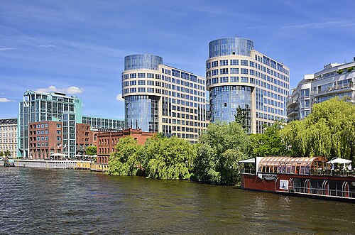 | Blick vom Holsteiner Ufer / Moabiter Brücke über die Spree zur Unternehmenszentrale der Gewobag. Sie ist dort seit 2014 ansässig. | Gewobag-Archiv | Sabine Dobre | Datei:Gewobag Firmenzentrale Sabine Dobre.jpg | |