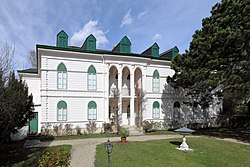 | Südwestansicht des Geymüllerschlössels an der Adresse Pötzleinsdorfer Straße 102 in Pötzleinsdorf, ein Wiener Stadtteil im 18. Gemeindebezirk Währing. Das Schlössel wurde um 1810 im Auftrag des Wiener Handelsherrn und Bankiers Johann Jakob Geymüller (1760–1834) als Sommerresidenz errichtet und ist aktuell (2024) eine Expositur des Museums für angewandte Kunst (MAK). | Eigenes Werk | C.Stadler/Bwag | Datei:Pötzleinsdorf (Wien) - Geymüllerschlössel.JPG | |